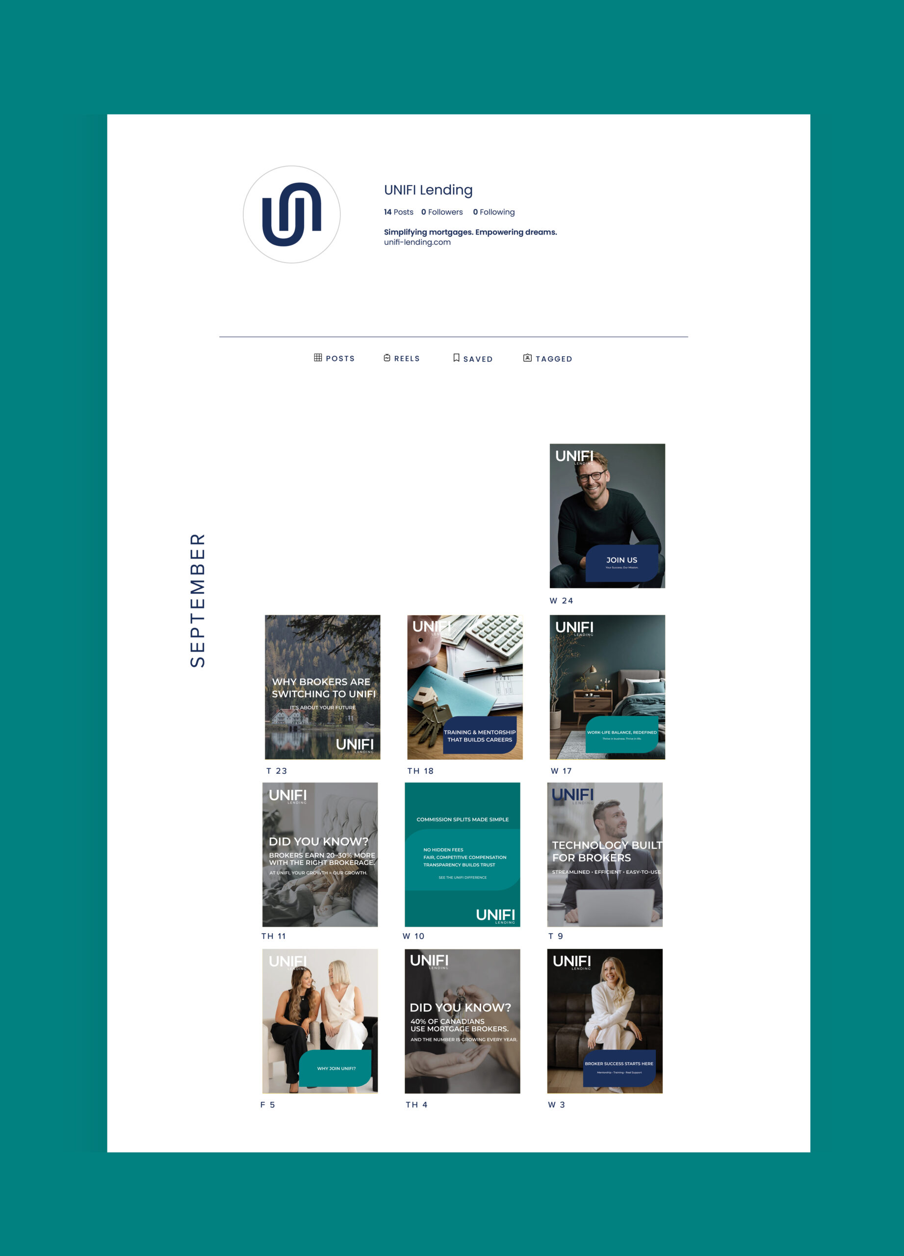 CONCEPT: Unifi Lending is a modern mortgage brokerage focused on transparency, simplicity, and client-centered service. This project involved developing visual assets and marketing materials that strengthened Unifi’s brand presence across digital and social platforms while communicating mortgage-related content with clarity and visual cohesion.